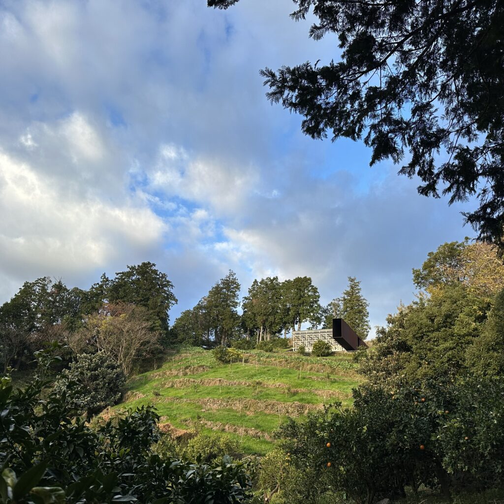 建物探訪 穏やかな秋空の下、趣ある建物で過ごすひととき 今日は素晴らしい青空と雲が広がる穏やかな午後、個性的な建築が魅力の場所に立ち寄りました。敷地には立派な芝生が広がり、木製のベンチが並ぶ風景が大変印象的です。